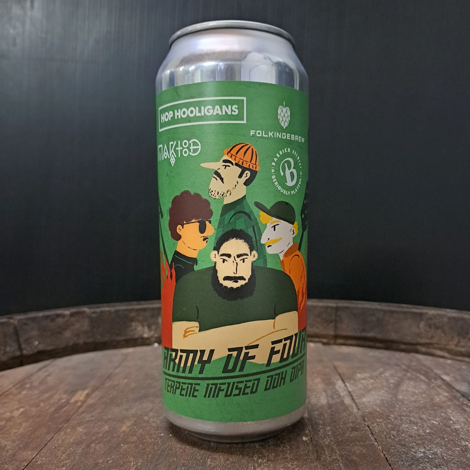 A big mix of Citra Cryo, Cryo Pop, Strata and El Dorado plus a hit of Abstrax Brewgas Blue Dream turns Army of Four into a hazy DIPA loaded with tropical fruit, blueberry candy notes and a bold kush driven edge. Brewed together with Hop Hooligans, Baxbier and Maktoob it is loud, juicy and full of character!